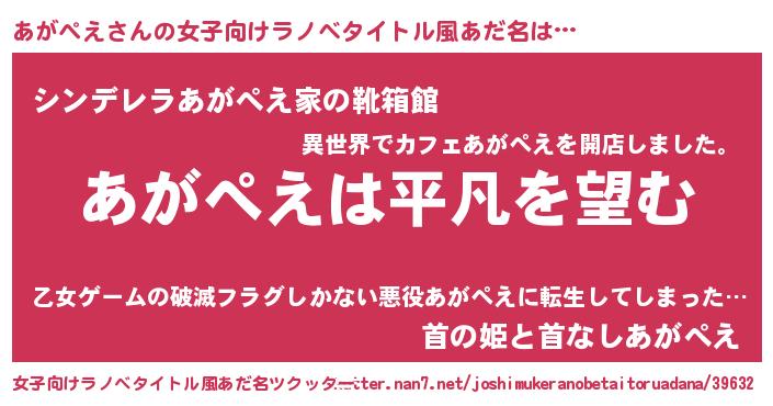| ヘコむあだ名 | 『あがぷりん』『あがぺえ(遠い目)』 |