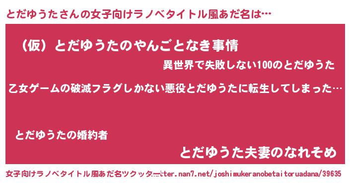| 男性向けラノベタイトル風あだ名 | 『魔弾の王ととだゆうた』 |