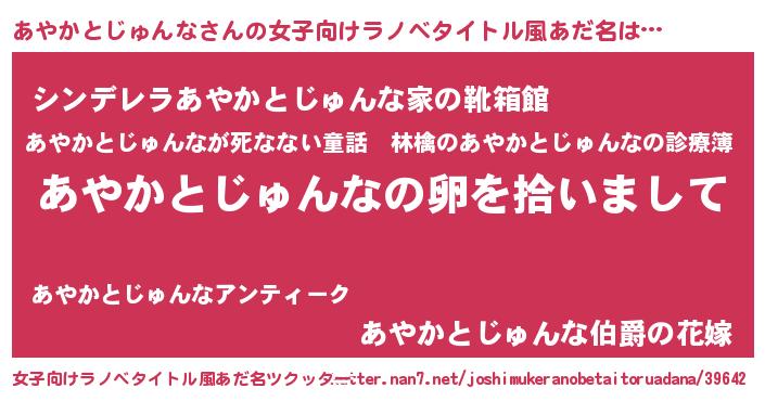 | 意味不明あだ名 | 『とにかく怪しいあやかとじゅんな』 |