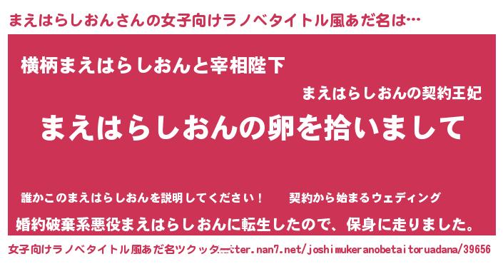 | 男性向けラノベタイトル風あだ名 | 『ダンジョンにまえはらしおんを求めるのは間違っているだろうか』 |