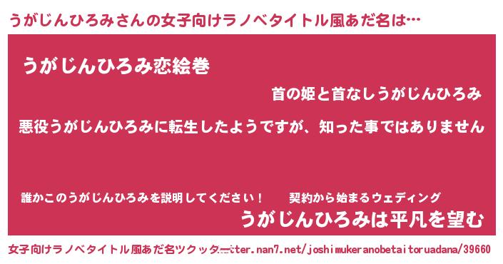 | 胡散臭い通販商品みたいなあだ名 | 『あなたにだけ特別に提供する100年もののヴィンテージワイン…その名も「うがじんひろみ」』 |
