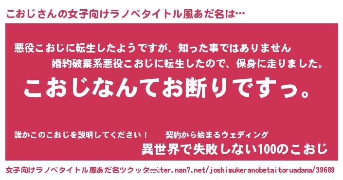 | ヘコむあだ名 | 『こおじ(小並感)』『こおにゅー』 |