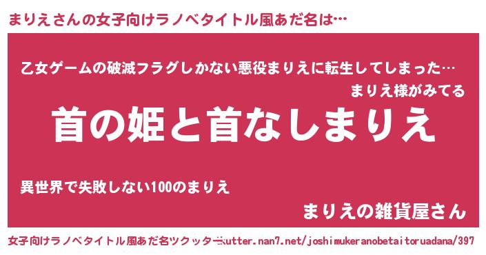 | 男性向けラノベタイトル風あだ名 | 『はたらくまりえさま!』 |