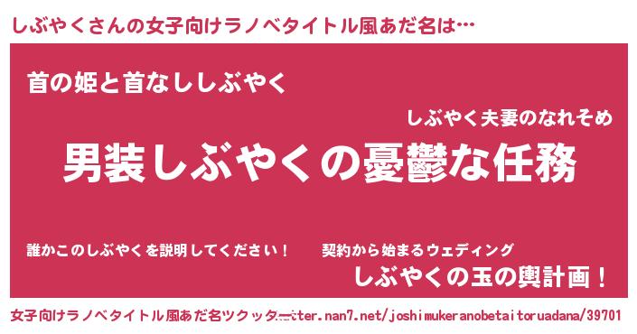 | 意味不明あだ名 | 『なめこ科しぶやく属』 |