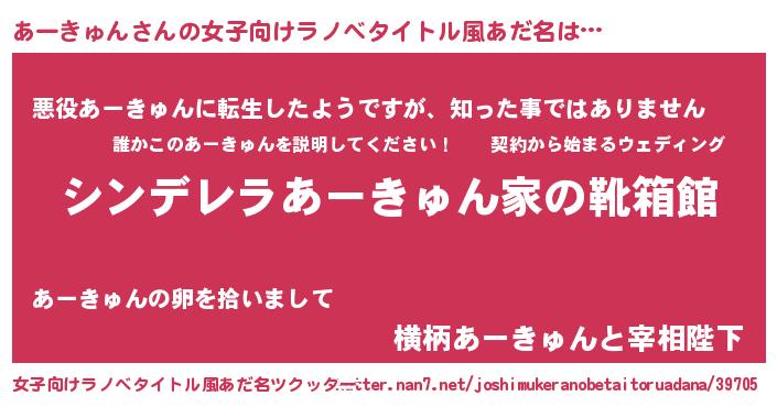 | 意味不明あだ名 | 『住所不定無職あーきゅん(6歳)』 |