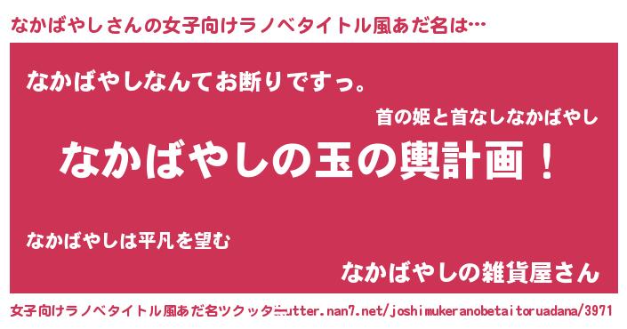 | 男性向けラノベタイトル風あだ名 | 『転生したらなかばやしだった件』 |