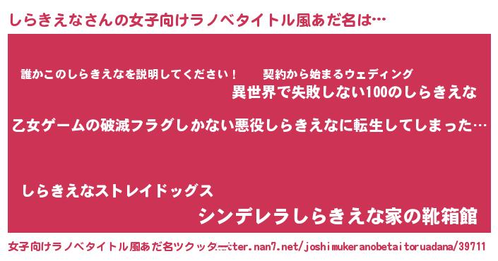 | 胡散臭い通販商品みたいなあだ名 | 『世界中を虜にした100年もののヴィンテージワイン…その名も「しらきえな」』 |