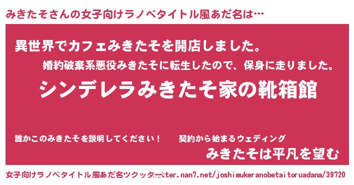 | 胡散臭い通販商品みたいなあだ名 | 『絶対に幸福をもたらす健康食品…その名も「みきたそ」』 |