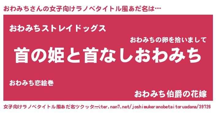 | 恥ずかしいあだ名 | 『オワミチデラックス』『おわっちょ』 |