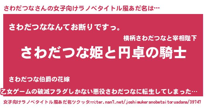 | 男性向けラノベタイトル風あだ名 | 『さわだつなの憂鬱』 |