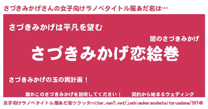 | 男性向けラノベタイトル風あだ名 | 『おまえをオタクにしてやるから、俺をさづきみかげにしてくれ! 』 |