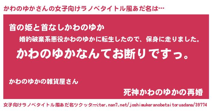| 胡散臭い通販商品みたいなあだ名 | 『ガンによく効くアガリクス…その名も「かわのゆか」』 |