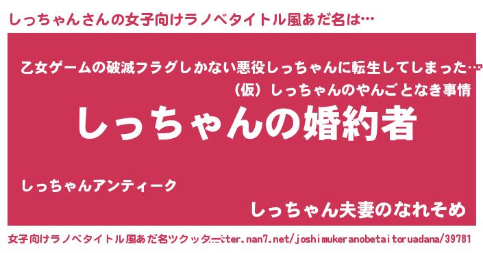 | 胡散臭い通販商品みたいなあだ名 | 『運命の人と巡り会える高級そうな絵画…その名も「しっちゃん」』 |