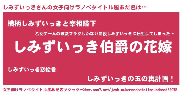 | ファンタジー風あだ名 | 『エターナルシミズイッキー』 |