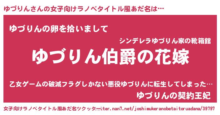 | 男性向けラノベタイトル風あだ名 | 『やはりゆづりんの青春ラブコメはまちがっている 』 |