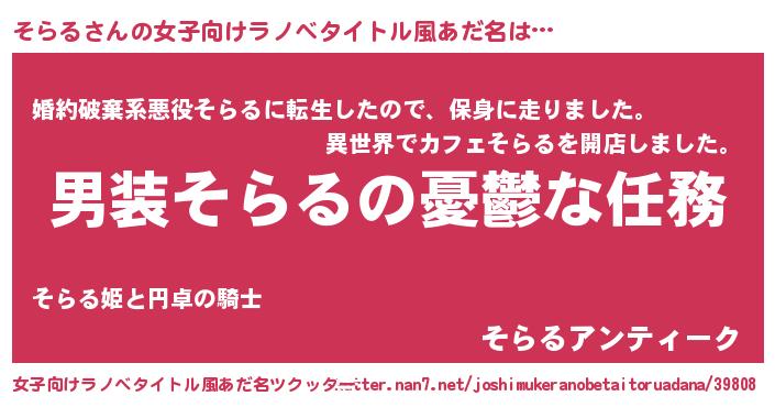 | 男性向けラノベタイトル風あだ名 | 『うちのそらるが世界を掌握している!』 |