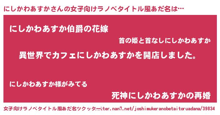 | 意味不明あだ名 | 『永久保存にしかわあすか』 |