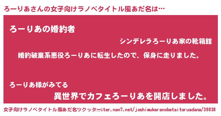 | 男性向けラノベタイトル風あだ名 | 『ローリアスレイヤー』 |
