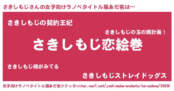 | ヒーロー風カッコイイあだ名 | 『愛の使者さきしもじ』『ネオサキシモジ』 |