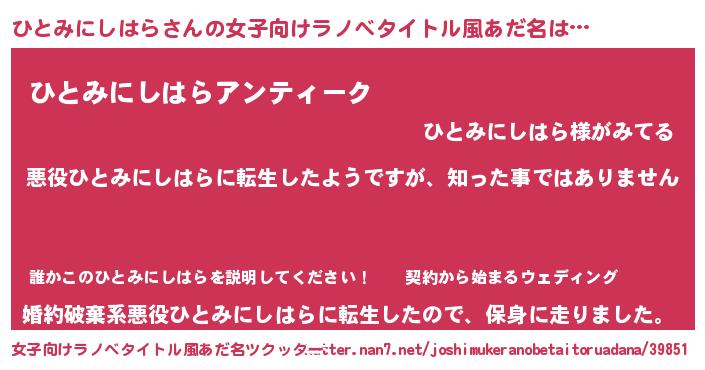 | 男性向けラノベタイトル風あだ名 | 『この素晴らしい世界にひとみにしはらを!』 |