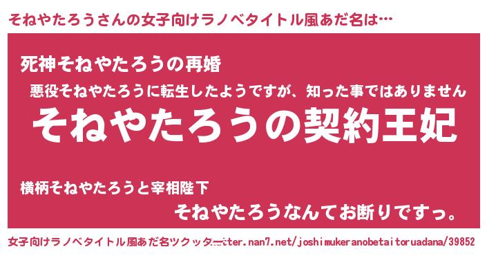 | 男性向けラノベタイトル風あだ名 | 『誰もが恐れるあのそねやたろうが、ぼくの専属メイドになるようです。』 |