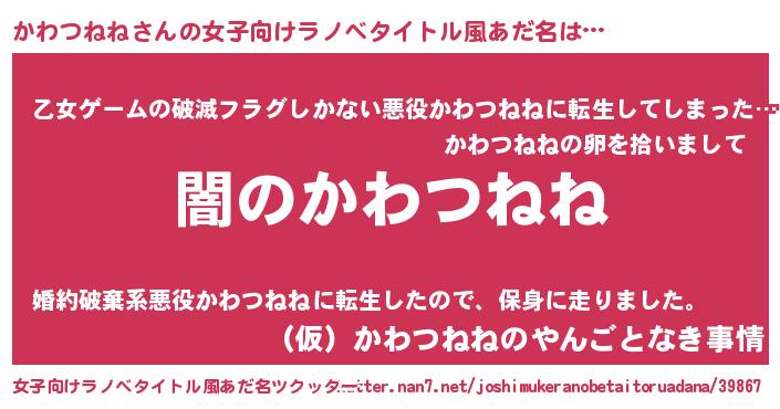 | ヒーロー風カッコイイあだ名 | 『サイバー戦士カワツネネ』 |