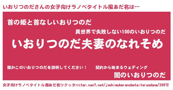 | 男性向けラノベタイトル風あだ名 | 『おまえをオタクにしてやるから、俺をいおりつのだにしてくれ! 』 |