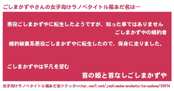 | 男性向けラノベタイトル風あだ名 | 『ゴシマカズヤスレイヤー』 |