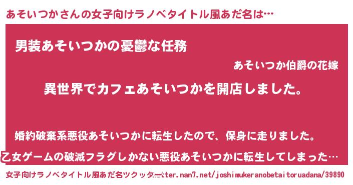 | 胡散臭い通販商品みたいなあだ名 | 『前代未聞の健康食品…その名も「あそいつか」』 |