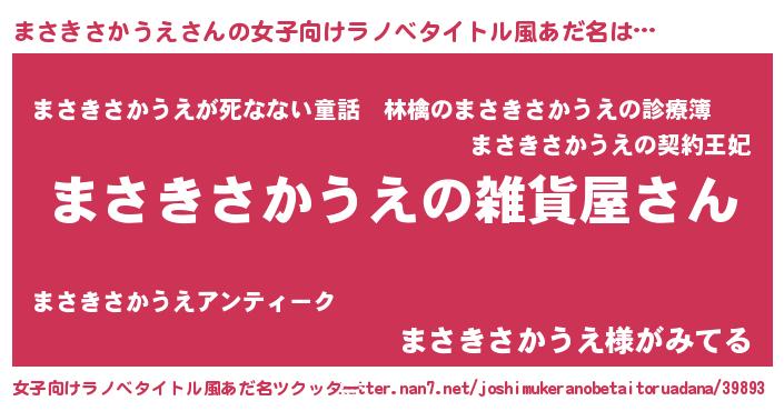 | ファンタジー風あだ名 | 『エターナルマサキサカウエー』 |