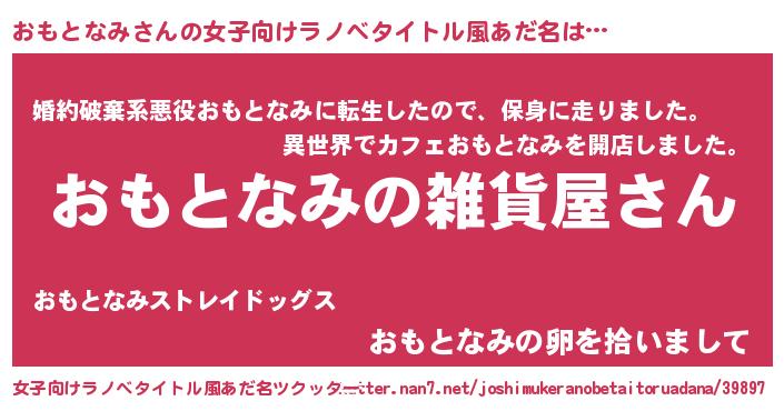 | 男性向けラノベタイトル風あだ名 | 『やはりおもとなみの青春ラブコメはまちがっている 』 |