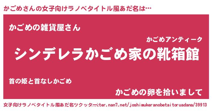 | ヘコむあだ名 | 『豆乳』『かごっ子』『かごめ(笑)』 |