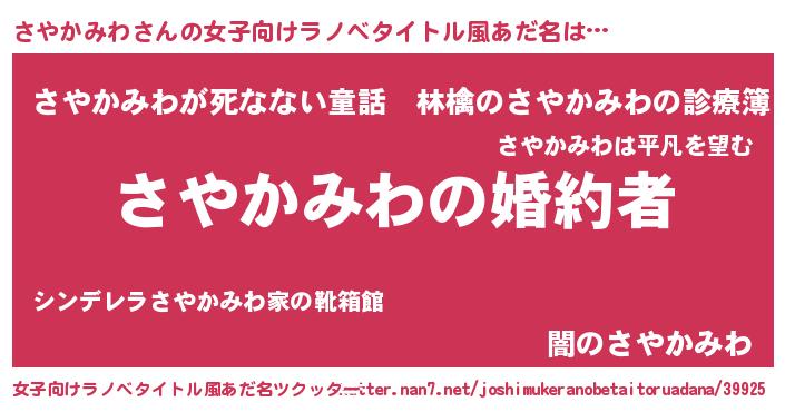 | ファンタジー風あだ名 | 『エターナルサヤカミワー』『ゼサヤトゥ』 |