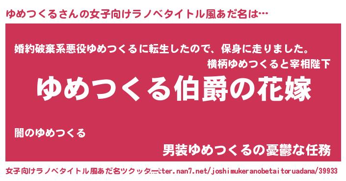 | ファンタジー風あだ名 | 『エターナルユメツクルー』『ゼユメトゥ』 |