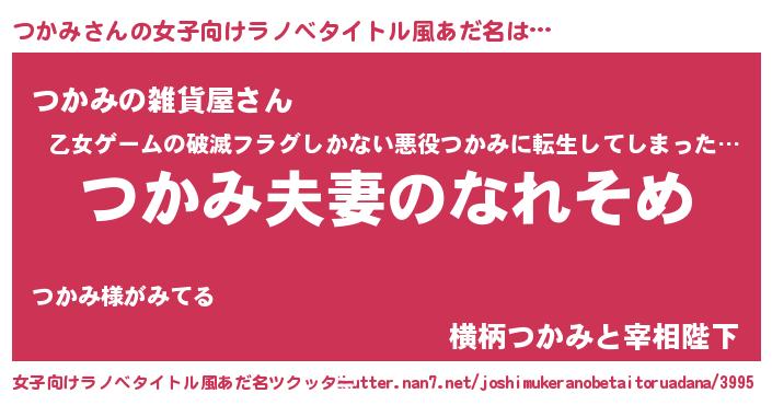 | 男性向けラノベタイトル風あだ名 | 『おまえをオタクにしてやるから、俺をつかみにしてくれ! 』 |