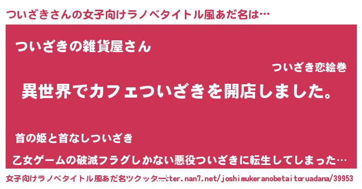 | 男性向けラノベタイトル風あだ名 | 『誰もが恐れるあのついざきが、ぼくの専属メイドになるようです。』 |