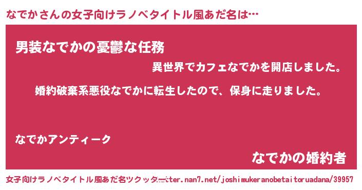 | 男性向けラノベタイトル風あだ名 | 『ナデカスレイヤー』 |