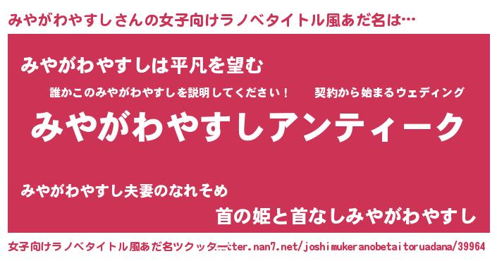 | 意味不明あだ名 | 『自称みやがわやすし』 |