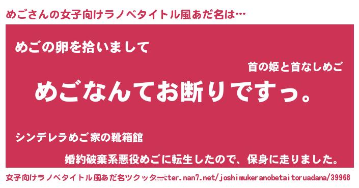 男性向けラノベタイトル風あだ名 | 『魔法科高校のめご』『メゴスレイヤー』 |