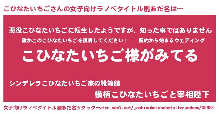 | 男性向けラノベタイトル風あだ名 | 『こひなたいちごの嫁は女の子じゃないと思った?』 |