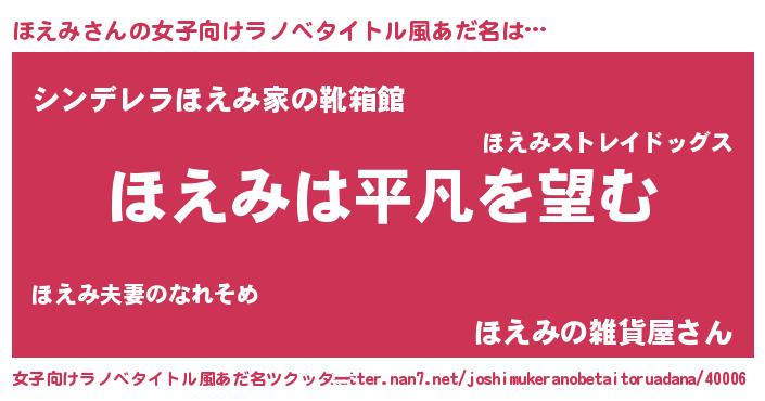 | ヒーロー風カッコイイあだ名 | 『魔戒騎士ホエ』『ウルトラほえみマン』 |