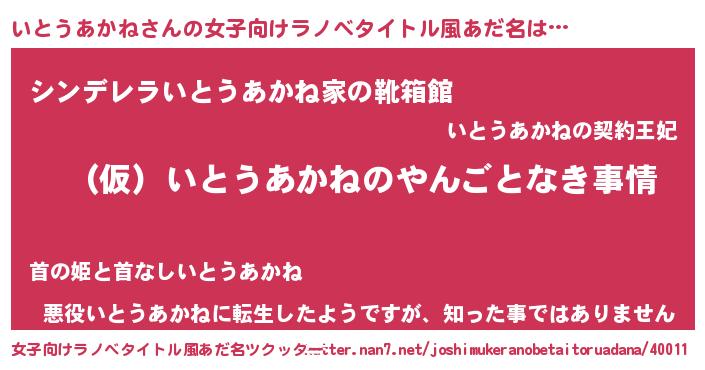 | 胡散臭い通販商品みたいなあだ名 | 『必ず成功する水晶球…その名も「いとうあかね」』 |
