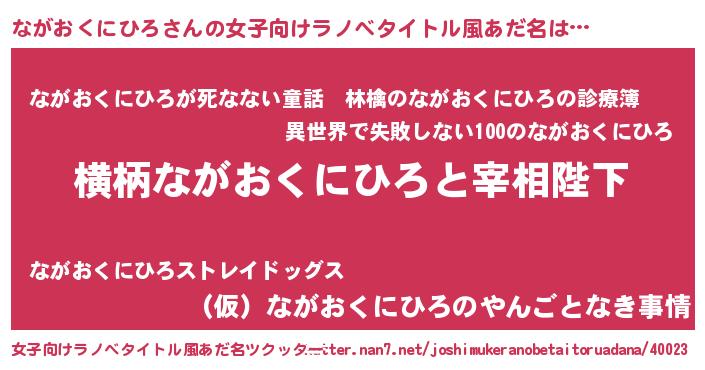 | 男性向けラノベタイトル風あだ名 | 『ながおくにひろに滅ぼされるだけの簡単なお仕事です』 |