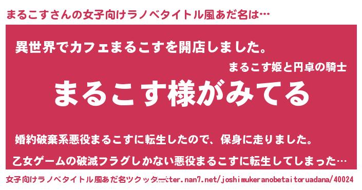 | 男性向けラノベタイトル風あだ名 | 『まるこすの嫁は女の子じゃないと思った?』 |