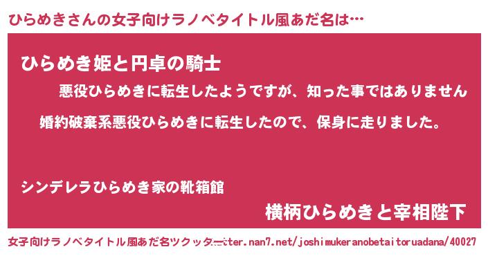 | ファンタジー風あだ名 | 『ユリヒラヴァット』『ヒラフェル』 |