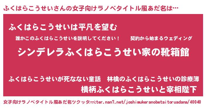 | 意味不明あだ名 | 『とにかく怪しいふくはらこうせい』 |