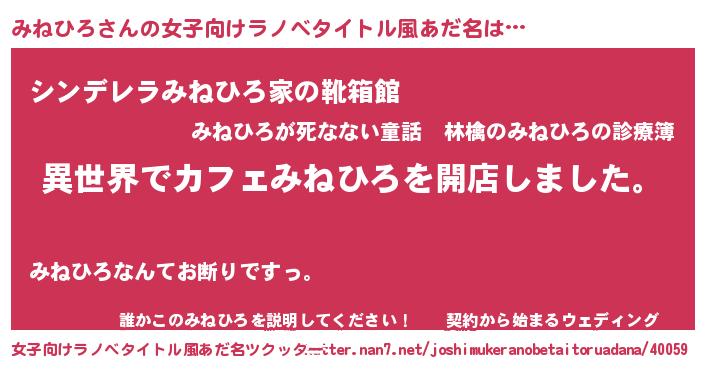 | 男性向けラノベタイトル風あだ名 | 『誰もが恐れるあのみねひろが、ぼくの専属メイドになるようです。』 |
