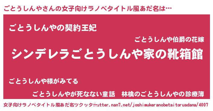 | 胡散臭い通販商品みたいなあだ名 | 『絶対に幸福をもたらす水素水…その名も「ごとうしんや」』 |