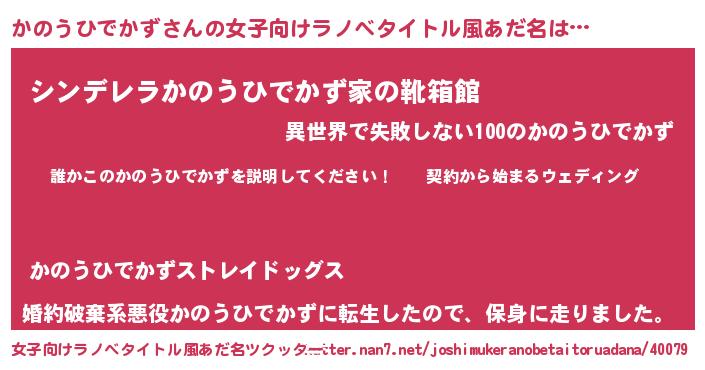 | 男性向けラノベタイトル風あだ名 | 『カノウヒデカズアートオンライン』 |