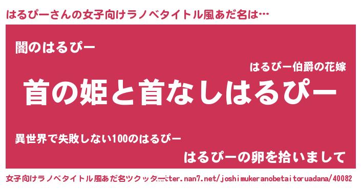 | 男性向けラノベタイトル風あだ名 | 『はたらくはるぴーさま!』 |